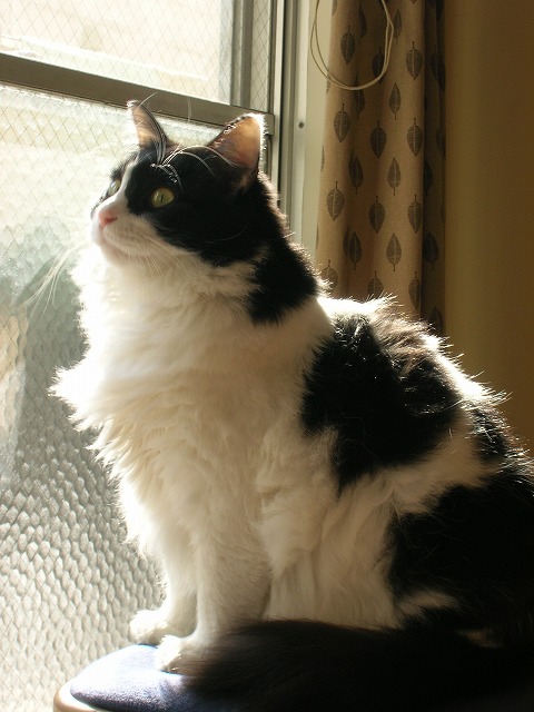 今、ニャンズのお気に入りの場所はピアノの上とダイニングテーブル下の椅子の上。(画像はお気に入りの椅子の上)