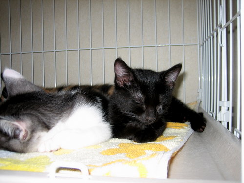 ワタシタチの素敵な里親様に早く出会えるようにがんばろうネ・・・・」スヤスヤ