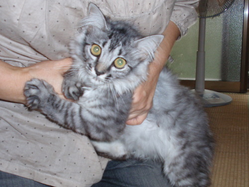 商店街のアイドル猫のロボちゃんが車に撥ねられて死んだ翌日5月31日の晩いつも駆け寄って来たロボちゃんはもういないんだと涙を流しながら歩いていた時、甲高い子猫の鳴き声が聞こえて来たんです。