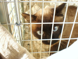 警戒心が超強いお母さんに似たのか、残りの1子猫(シャム)はなかなか姿を現さず、漸く昨日捕獲器で確保しました。