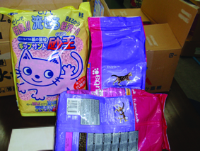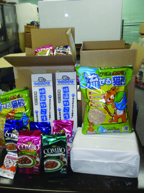 また、H様より「ドライフ-ド」28袋・「爪研ぎ」・「トイレシ-ツ」・「トイレ砂」等多数のご支援物資を頂きました。