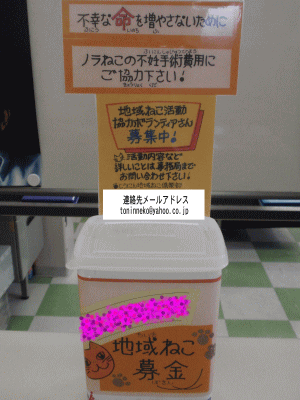 会員皆で努力はしておりますが、地域猫活動を円滑に進めていくために、心苦しくも募金のお願いをしております。