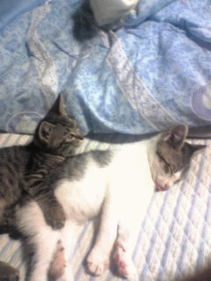 母猫の温もりの代わりに2匹で暖めあってこの1ヵ月支えあってきた2匹。