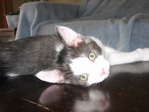 「ハジメマシテ・・・ボク子猫でス 最近保護してもらったんでス。」