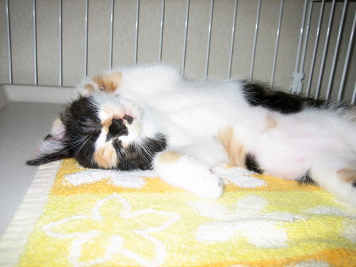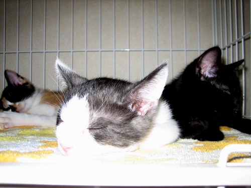 ワタシタチの素敵な里親様に早く出会えるようにがんばろうネ・・・・」スヤスヤ