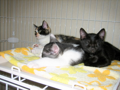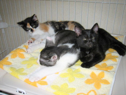 子猫3兄妹(白黒・三毛・黒)☆里親様募集