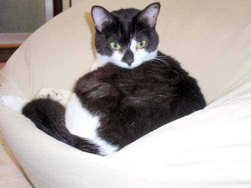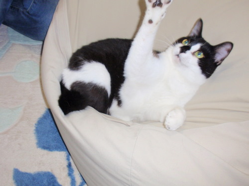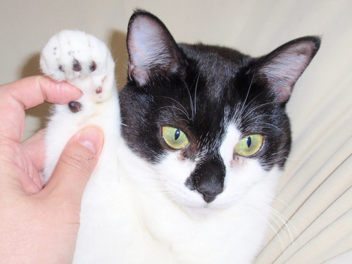 白黒:仮名いっちゃん 男の子 外側が黒い毛だが中は白 人懐っこく甘えん坊
