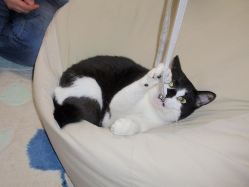 「でも猫の本能としてはこういったヒモって無視できないわ!! え~い!」